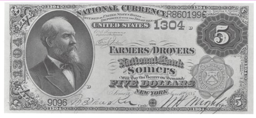 Farmers and Drovers National Bank of Somers, Five dollar currency, 1885 SHS collection