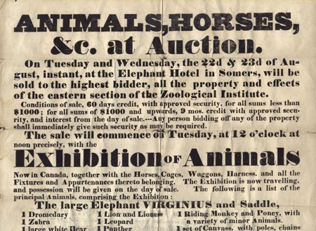 Animals, Horses &c. at Auction, 1837, detail Notice of sale to be held at the Elephant Hotel SHS 75.5.15 Gift of Laura Howe Nelson