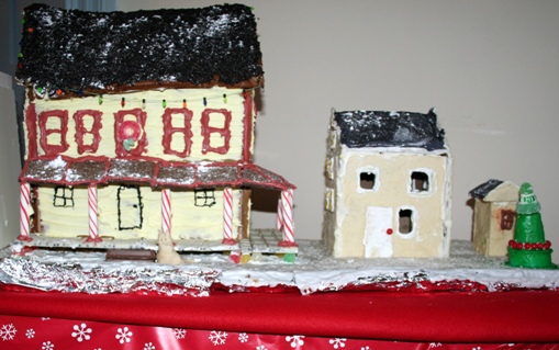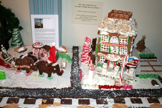 Somers Historical Society's Gingerbread Houses December 19, 2008 .... The gingerbread tables displayed here depict the four Town of Somers owned Historic Sites. The Wright Reis Homestead Tomahawk Chapel and Cemetery Mt. Zion Church and Cemetery The Elephant Hotel They were designed and created by Junior Historians of Somers Historical Society Patrice Lovell Kerry Nicholson Evelyn Parker Madeline Zimmermann |